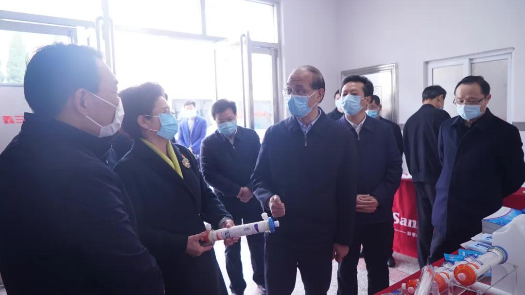 調(diào)研現(xiàn)場 ,省委常委 、副省長吳曉軍首先了解公司的基本情況 ,詢問公司的復工復產(chǎn)情況、產(chǎn)能恢復進度、安全生產(chǎn)等工作 ,公司副董事長 、總經(jīng)理雷鳳蓮一一作了詳細匯報 。當?shù)弥驹谑?、市 、縣(小藍經(jīng)開區(qū))有關(guān)部門的幫助和指導下,1月31日就正式啟動透析液 、疫苗注射器等重點產(chǎn)品的復工生產(chǎn) ,3月10日公司獲得一次性使用醫(yī)用口罩二類醫(yī)療器械注冊證,現(xiàn)正在竭盡全力 、滿負荷生產(chǎn)一次性使用醫(yī)用口罩 、酒精棉和84消毒液時 ,省委常委 、副省長吳曉軍叮囑道 ,市場是企業(yè)的生命線 ,企業(yè)要在確保員工安全和產(chǎn)品質(zhì)量的前提下 ,堅定信心 ,緊抓機遇,進一步加大生產(chǎn)力度 ,全力保障市場供應(yīng) ,堅定不移地保市場 、穩(wěn)市場 、拓市場 。