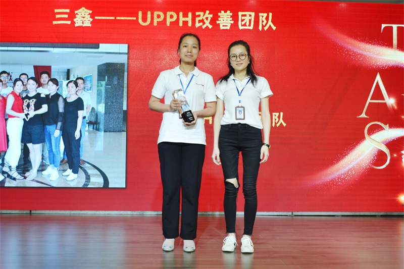 ▲副總經(jīng)理彭玲為“UPPH改善團(tuán)隊(duì)”獲獎(jiǎng)團(tuán)隊(duì)頒獎(jiǎng)