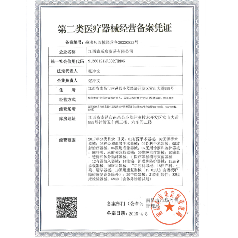 江西鑫威康貿(mào)易有限公司(簡(jiǎn)稱 :鑫威康),成立于2018年8月,專業(yè)為醫(yī)療器械生產(chǎn)、經(jīng)營(yíng)企業(yè)提供第三方多功能倉(cāng)儲(chǔ) 、配送、供應(yīng)鏈管理等服務(wù) 。公司坐落于國(guó)家級(jí)小藍(lán)經(jīng)濟(jì)技術(shù)開發(fā)區(qū) ,是江西香港馬買馬網(wǎng)站醫(yī)療科技股份有限公司(股票代碼 :300453)全資子公司 。